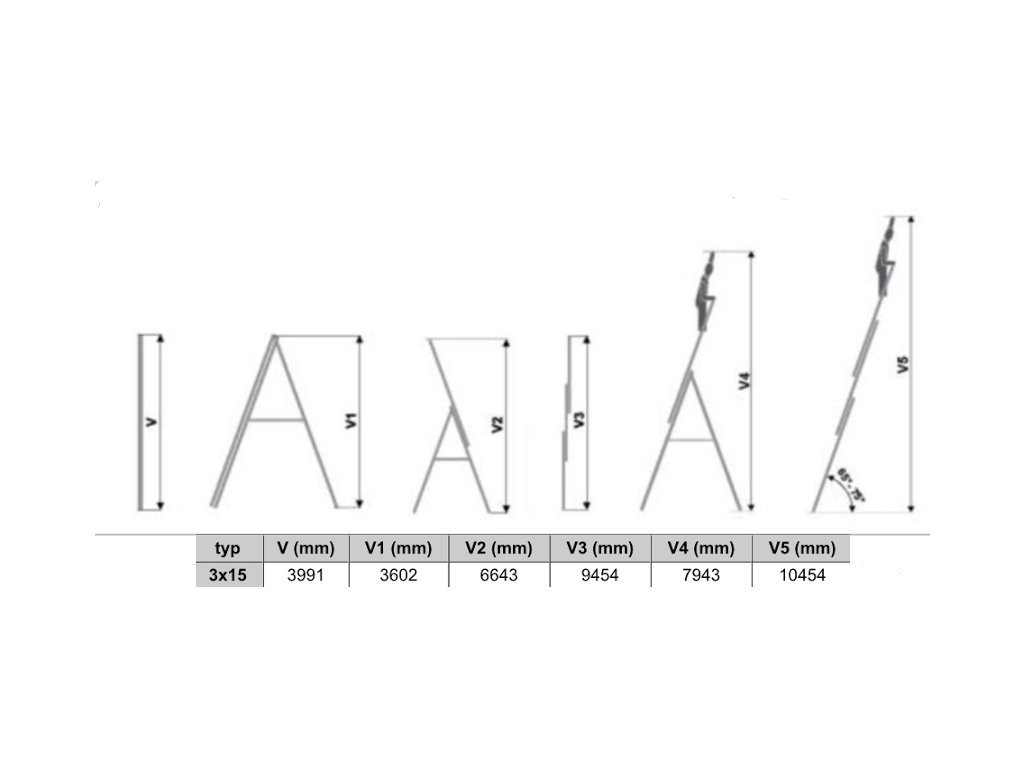 - možnosť použitia ako trojdielny, dvojdielny a jednodielny rebrík, výsuvný, rozložený do tvaru „A“